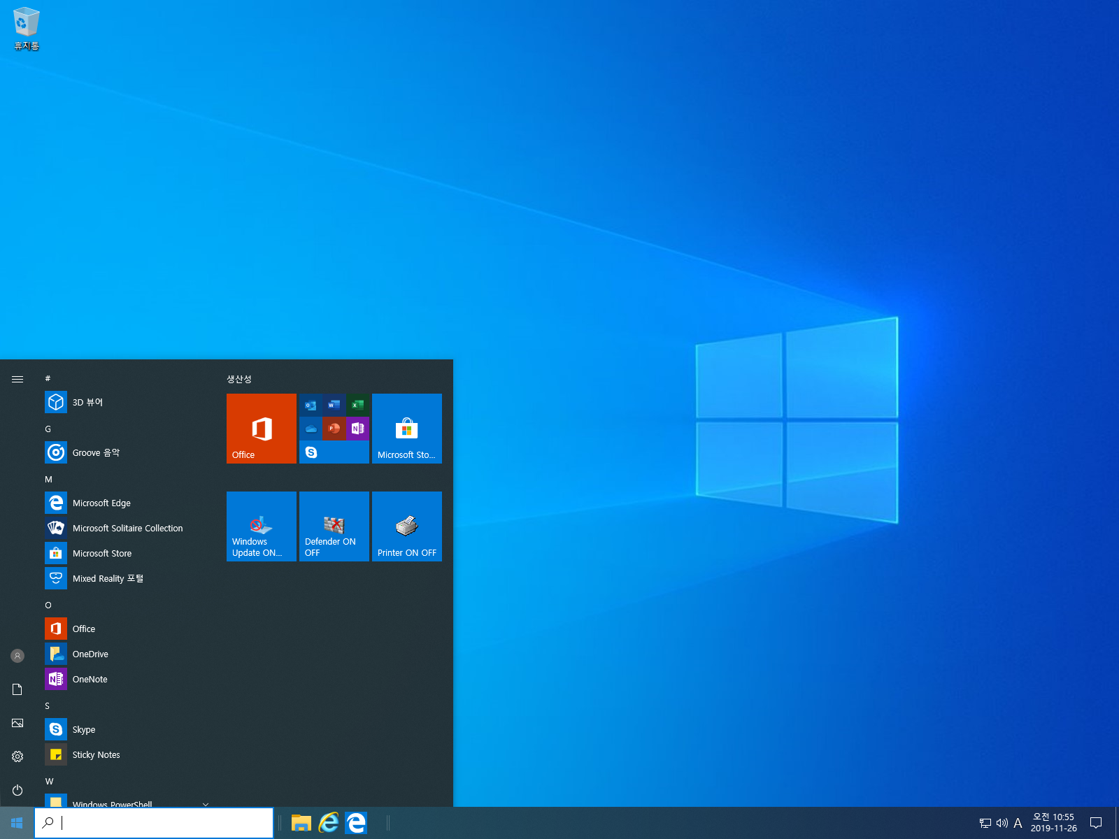 - Cortana 제거 완료 → 한국어가 지원되지않기 때문에 모든 버전에서 삭제